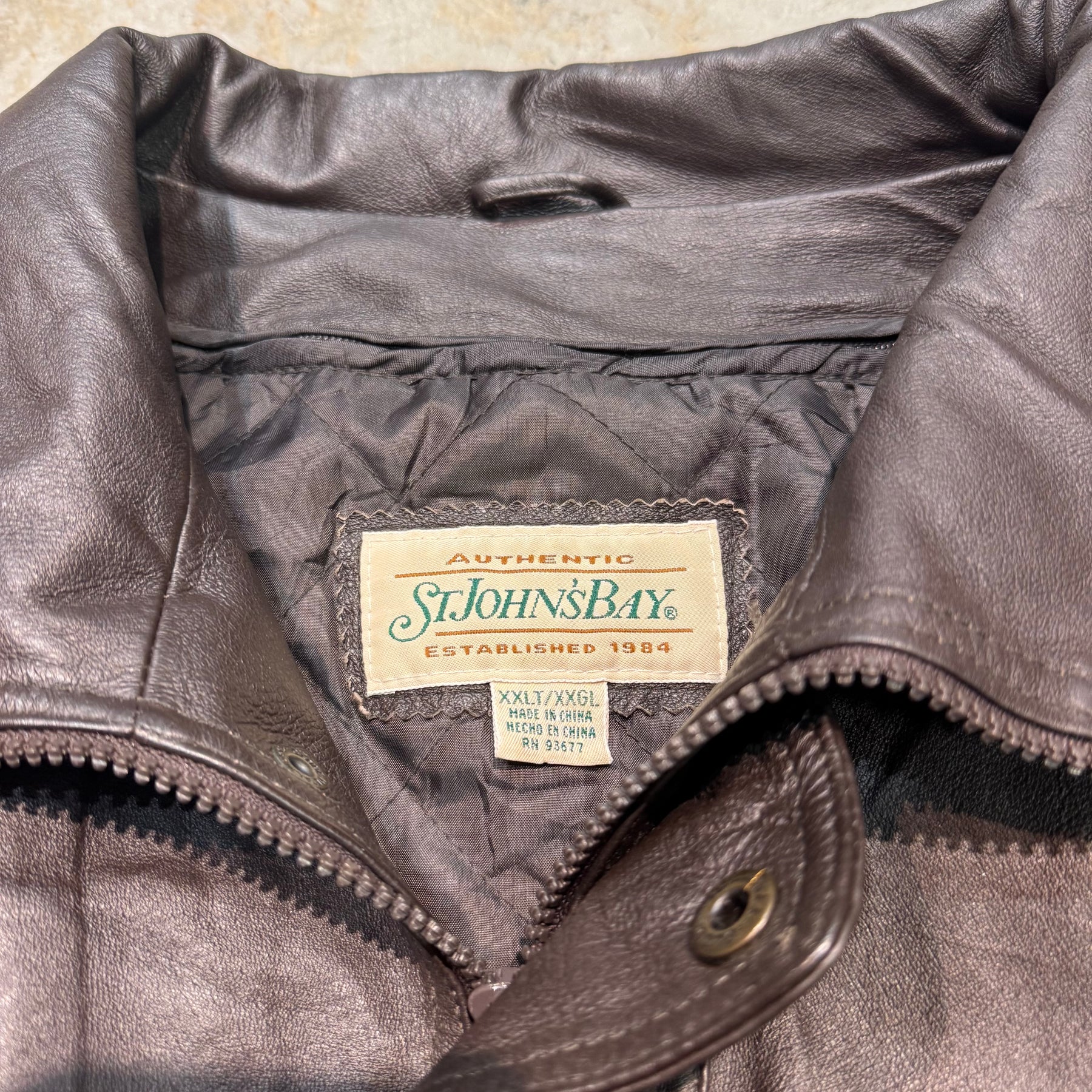 古着 90's St.JOHN'S BAY/ セントジョーンズベイ/本革ジップアップレザージャケット/ 牛革/ サイズ2XL