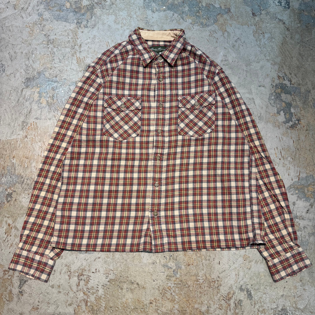 古着 eddie bauer/エディーバウアー/ 長袖短丈リメイクシャツ/ チェック柄/ サイズL